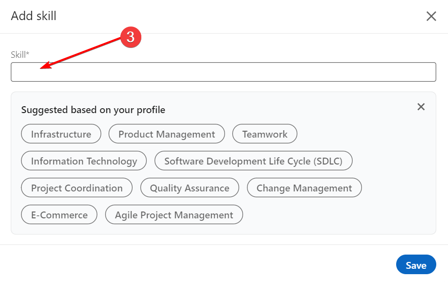 How to add “Skills” section to the LinkedIn profile Find the “Add profile section” button and click it. 2. Press “Add skills” 3. Search, add skills and click “Save”
